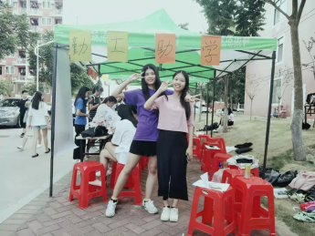 我们文学系勤工助学中心在四饭附近摆摊了呢。