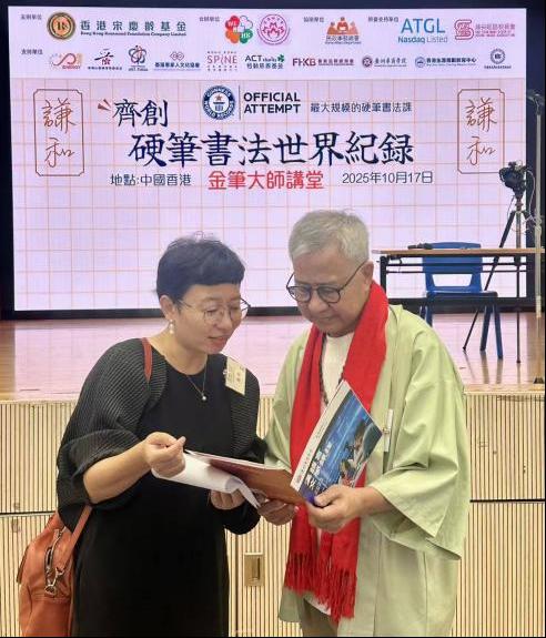 10月17日,香港宋庆龄基金联合多家教育机构,在港举办“齐创硬笔书法世界纪录”活动。近三百名中小学生与教师同堂挥笔,以硬笔书写《论语》《荀子》等中华经典语句。此活动最终以291名有效参与人数,成功打破健力士世界纪录。