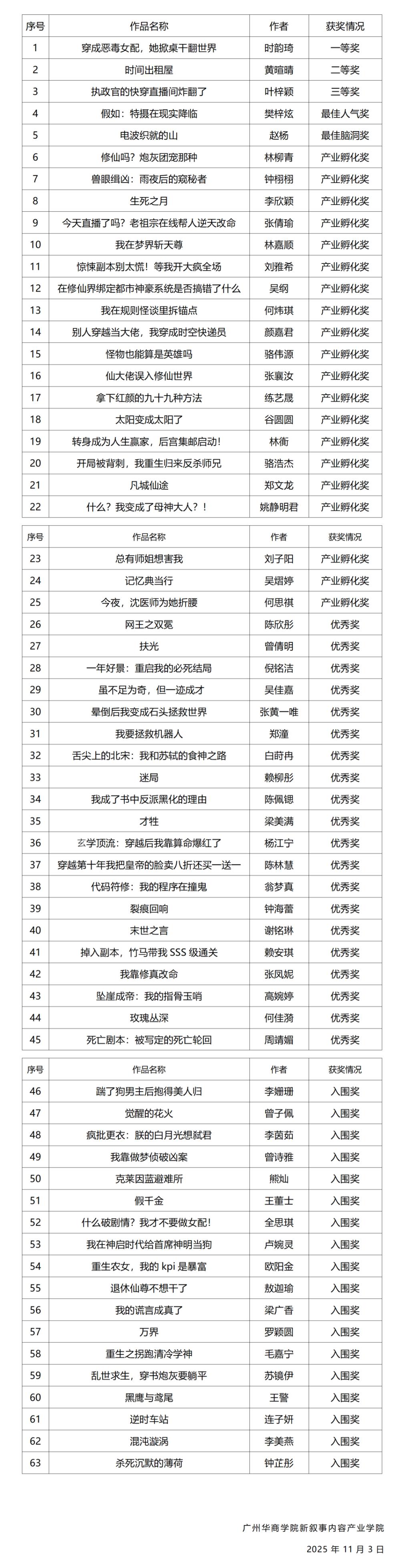 有63本作品成功入围!并从中选出一二三等奖、最佳人气奖、最佳脑洞奖、产业孵化奖、优秀奖和入围奖。