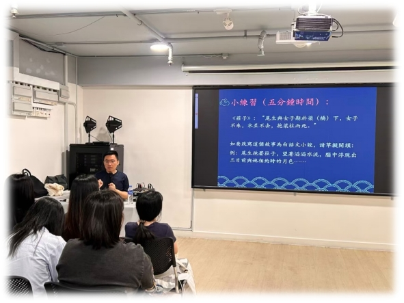 午餐后,同学们先来到了香港星光行大厦,聆听了两场精彩的课程。首先是香港大学中太阳网集团tcy8722博士,现任香港都会大学人文社会科学院创意艺术系系主任,助理教授邵栋老师带来的小说专题讲座,紧密围绕小说开头方式的讲授,带领同学们进行一场冒险的开始!