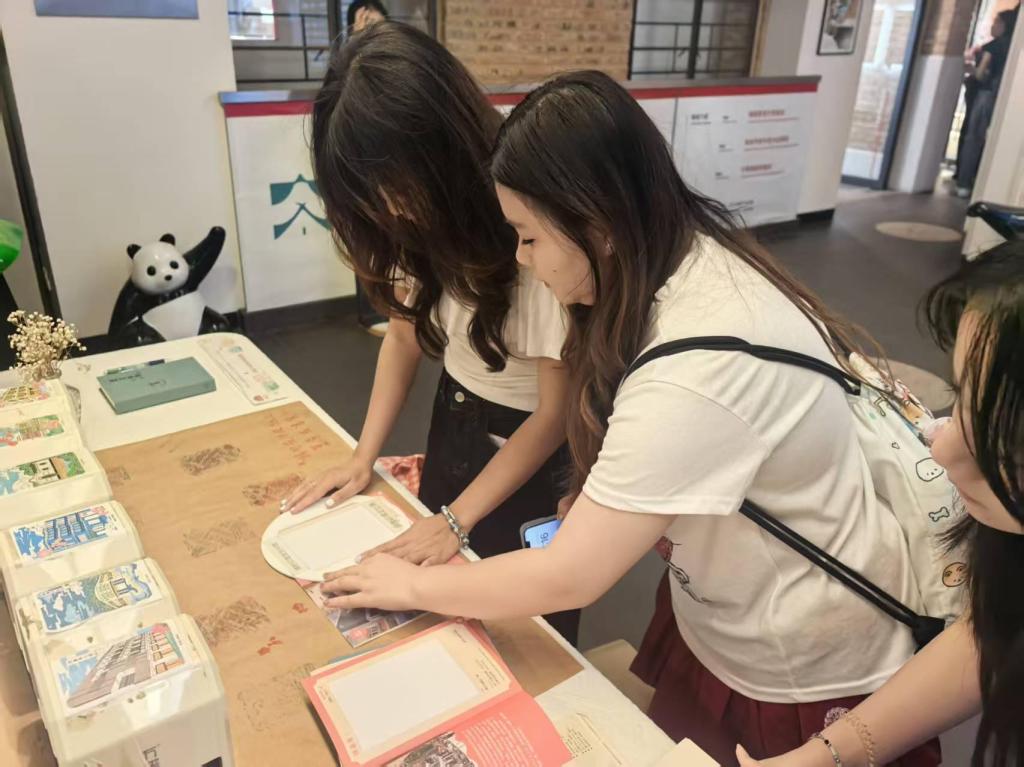 实践团队的同学们穿梭于展厅之间,主题盖章点不时传来轻快的欢笑声与惊喜声——原来,是大家正踊跃地在手册上盖下属于文学之旅的专属印章。一本本手册上,镌刻下的不仅是图案,更是同学们对文学的热爱与敬意。这些色泽鲜明的印章,让文化之旅在指尖留下了永恒的印记,也让同学们把香港文学馆的专属记忆,稳稳地“盖”进了心里。