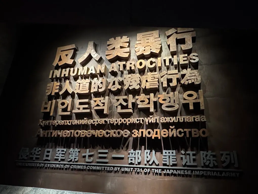 实践的最后一日,是沉重与思考交织的一天。 上午:七三一部队遗址 空气在这里仿佛凝固。踏入这片象征着人类历史上最黑暗一页的遗址,巨大的悲怆感扑面而来。冰冷的残垣断壁、详实的罪证陈列、受害者的无声控诉……这一切都在无情地揭露着殖民侵略的极端暴力与反人类罪行。这不是一个普通的旅游景点,而是一处承载民族创伤记忆的神圣场域,一堂关于和平、生命与人性尊严的必修课。队员们神情凝重,在沉默中完成了对历史的哀悼与反思,更加坚定了维护人类共同价值的决心。