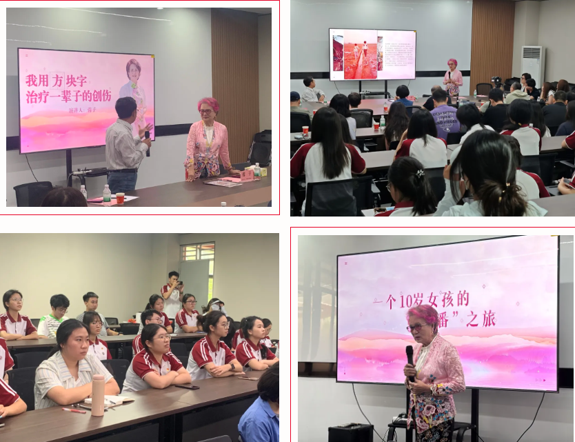 为了帮助同学们感受到文字在治愈心灵创伤、促进文化交流方面的强大力量。2025年9月16日,太阳网集团tcy8722在广州校区创新楼201开展了一场“我用方块字治疗一辈子的创伤”为主题的新加坡专栏作家蓉子分享讲座 ,一起探寻文字背后的温暖与力量。蓉子老师以自身跨越近70年的人生经历为脉络,为在场观众带来了一场直击心灵的分享,字里行间里充满了岁月沉淀的智慧与坚韧。