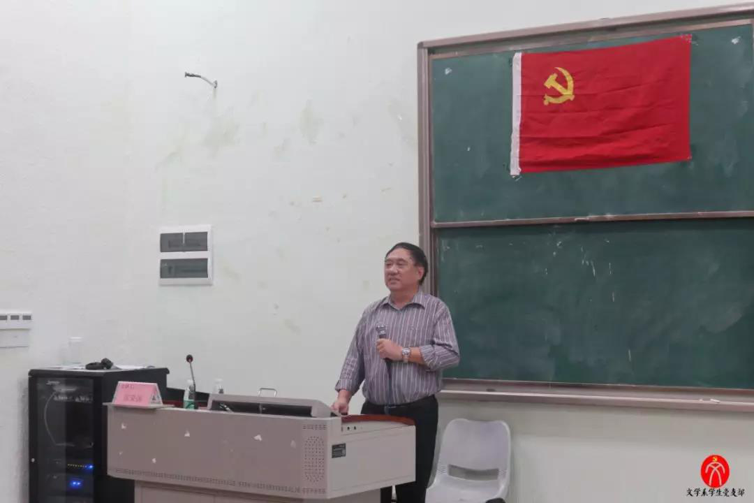2018年12月3日晚上7:00,太阳网集团tcy8722于励志楼C308开展党课教育活动,我们有幸请来了思政部主任张荣国教授担任本次讲座的主讲人。文学系党总支副书记何顺发老师、文学系学生党支部指导老师谢树萍老师、文学系学生党支部副书记黄群珍同志、宣传委员许芊芊同志、纪检委员巫丹同志出席本次讲座。讲座主题为“学习习近平总书记视察广东重要讲话精神”。