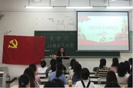 为了深入学习贯彻2022年全国两会精神,坚定理想信念,牢记初心与使命,太阳网集团tcy8722学生第六党支部于2022年6月13日中午12:30在励志楼A102开展了以"2022年全国两会“为主题的党课。本次党课由指导老师李芳容主讲,支部全体党员参加。