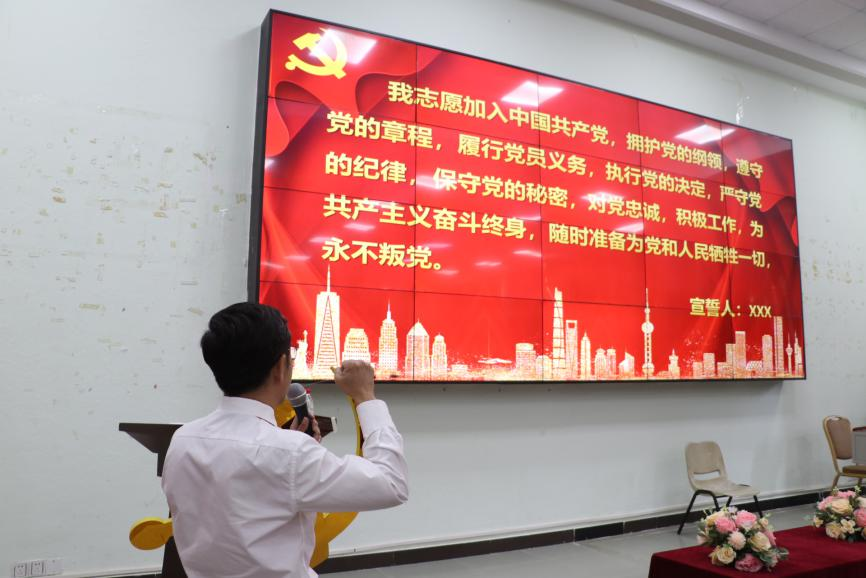 在领誓人伍世昭同志的带领下,全体党员重温了入党誓词。“我志愿加入中国共产党,拥护党的纲领,遵守党的章程,履行党员义务,执行党的决定,严守党的纪律,保守党的秘密,对党忠诚,积极工作,为共产主义奋斗终身,随时准备为党和人民牺牲一切,永不叛党。”党员同志们高举右拳,面对党旗庄严宣誓,再次表达了为共产主义事业奋斗终身的决心和信念。