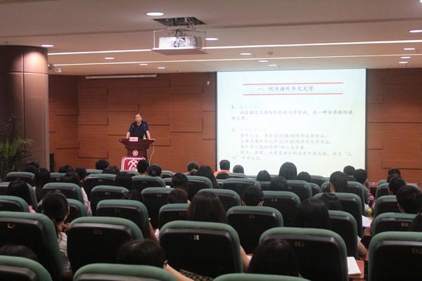 首先,王教授讲述了他个人对本次讲座题目的理解,他说:“海外这个说法只是暂时的,并不是很准确,是站在中国的角度看海外的文学。”随后,王教授向我们介绍说:“所谓华文文学即是一种以汉语为工具所创作的文学作品,是一种世界性的语种文学。而海外文学则是海外华人用华文创作的文学作品,其特点是具有或者部分具有中国血统,并且其‘认同’中华文化。”在清楚地解释完概念后,王教授进一步通过对华侨文学、华人文学和华裔文学的介绍向我们讲述了海外华文文学的发展。紧接着,在谈及海外华文文学的贡献时,王教授表示,海外文学是中国文学版图的扩大与走向世界的新方式,也是一种新的思维与新的视角。在王教授清晰的讲解过后,本次讲座也接近尾声。