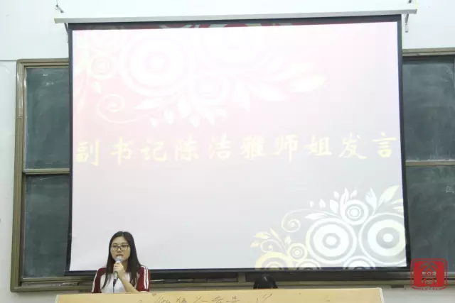 随后,副书记陈洁雅总结表示:回想起初入团学的日子,不管你是因为抱着好奇心想体验社团生活,还是为了想提高个人能力,请给在座的自己掌声,你们的努力是有份量的,你们的辛勤付出是有有目共睹的。她强调:“态度决定高度,细节决定成败”,以此来勉励在场干事们做事情要善始善终,坚持自己最初的想法。同时,她希望文学系团学同仁能够把接下来的活动、工作落实好,坚持到最后,大家上下一心,齐心协力地将团学办好。在发言的最后,也询问了干事们是否有继续为团学奉献的意愿,在场的干事们也积极地举起了他们的手。可见在与团学的一年相处后,干事们也对其产生了深厚的感情。