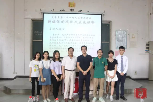 2016年5月31日下午四点整,由广东财经大学华商太阳网集团tcy8722文学系团总支/学生会学习部承办的主题为“新媒体的现状及发展趋势”的讲座在励志楼A108举行。由获得武汉大学新闻系与中南财经政法法学系双学士的费睿乔担任本次讲座的主讲人,出席本次讲座的嘉宾有文学系系主任尹康庄教授,文学系分管学生工作副主任张继荣老师,文学系团总支书记兼学生指导老师唐志壕老师等。
