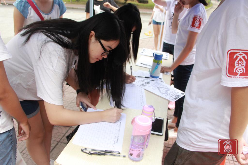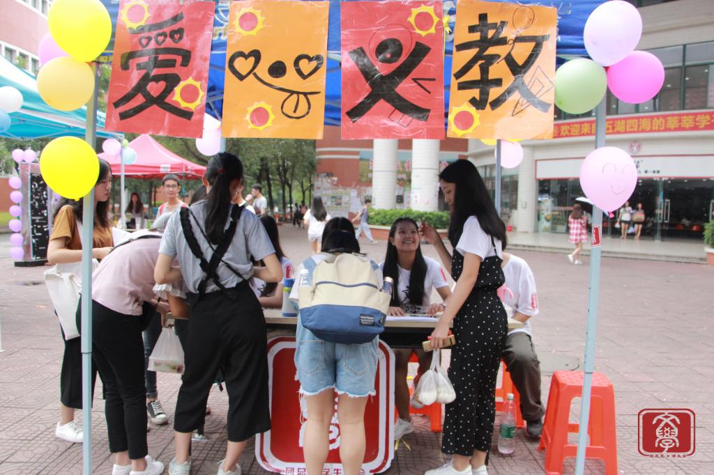 台风“海马”匆匆而过,为我们这次摆摊招募活动腾出一片蓝天。虽然空气闷热,但我们的工作人员早早来到现场布置,温馨的装饰吸引了很多同学的目光。在摆摊现场,工作人员向同学们宣讲了此次爱心义教活动的具体内容与意义,不少对此次活动感兴趣的同学被吸引来到摊位前,向工作人员做进一步的咨询,工作人员也都热情耐心地逐一回答。本次义教活动是面向全院招收志愿者,因此,各系同学都踊跃地报名参加,他们将一起助力公益,一起携手前行,相信参与爱心义教的同学们能够与仙村镇中心小学的学生们一起筑梦未来。