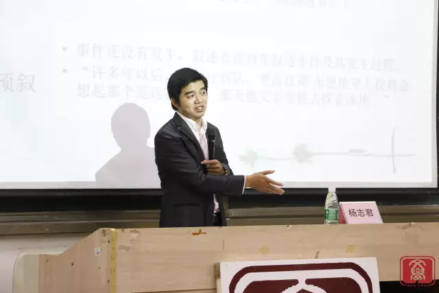 杨志君老师带我们了解了西方叙事学在中国的应用。他以陈平原《中国小说叙事模式的转变》为例展开演讲,中国小说叙事模式在1922年至1927年大体完成了转变,这时期百分之七十九的作品突破了传统小说叙事模式,这是中国小说已经基本完成叙事模式转变的依据,其原因是西方小说与传统文学两种合力的结果。