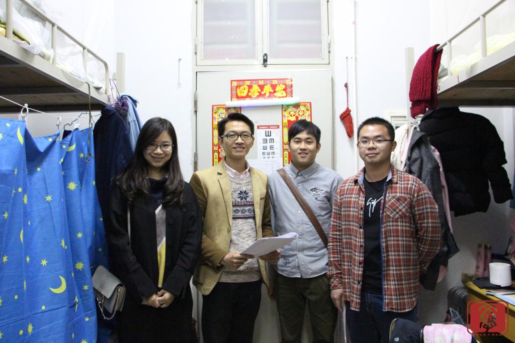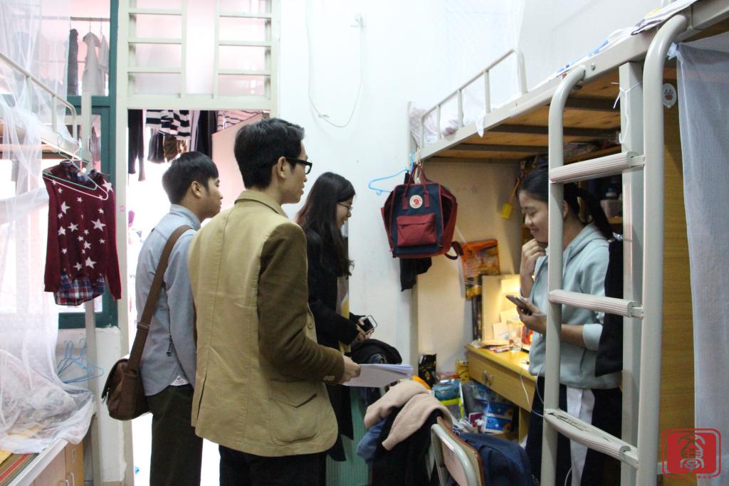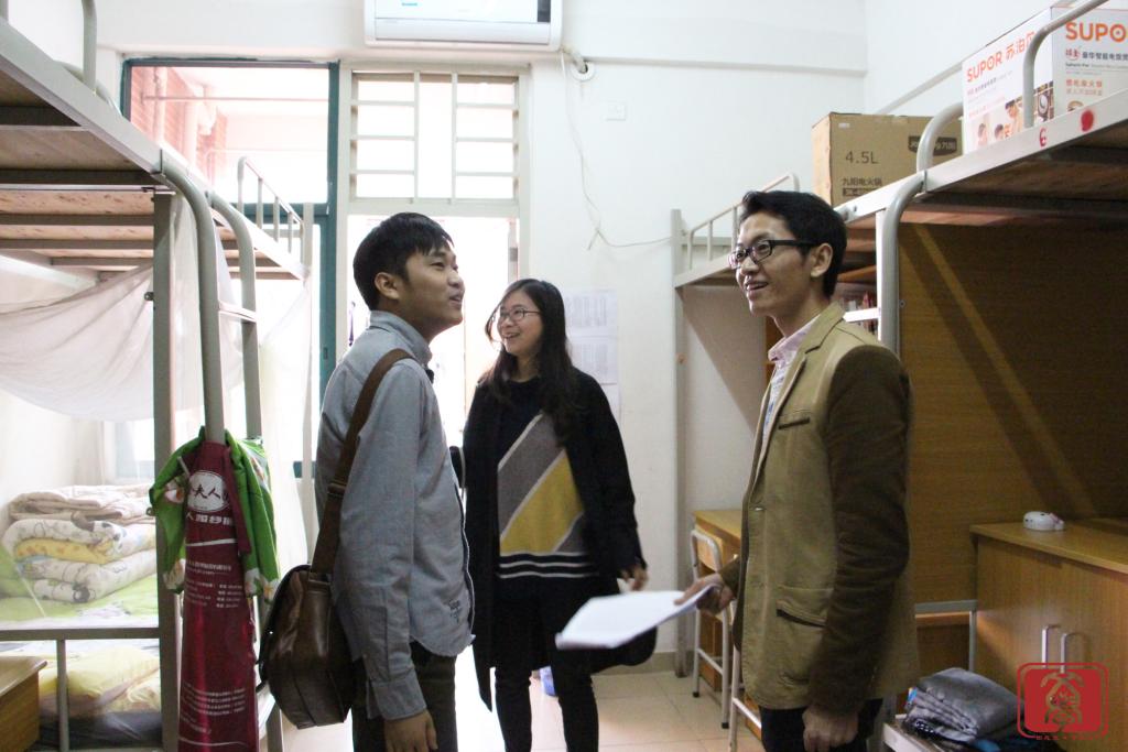 老师们走进同学们的寝室,亲切地询问了同学们的近况,了解同学们的生活环境,贴近学生生活。