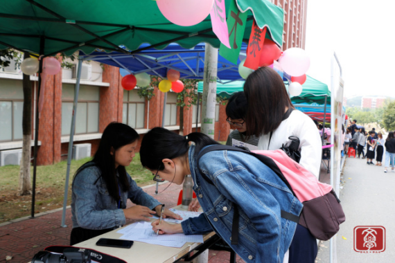 广东财经大学华商太阳网集团tcy8722文学系学生会记者团策划承办的“新闻之路,无冕之王”新闻技能大赛摆摊报名活动在三饭校道火热进行中。