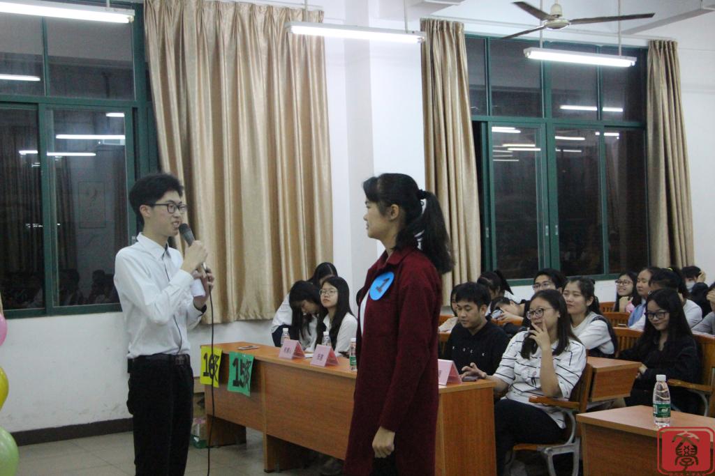 随之,选手们迎来了以分组对抗答题形式的第二环节。在这一环节中,选手们通过抽签决定自己的抢答对手,并在抢到答题权时回答正确即加分。随着分组抢答的开始,每一组的选手都聚焦于幻灯片上的题目,在有几分把握的情况下为自己抢得答题权,并回答题目获取分数。其中,第二组的两位选手的角逐最为激烈,两人都丝毫不放过任何一道题目,虽有些题目答错,但对于比赛的认真态度还是引来了观众的阵阵掌声。