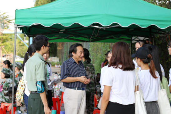 动员大会结束后,太阳网集团tcy8722文学系作为军训第九营,共分为24、25、26连3连,每连4排进行日常训练,同时还成立“反恐队”进行特训。今日下午,文学系主任赵维江教授、文学系分管学生工作副主任何顺发老师及文学系辅导员们到场探望参训学生,并组织助班群为参训新生做好后勤、医务等保障工作。