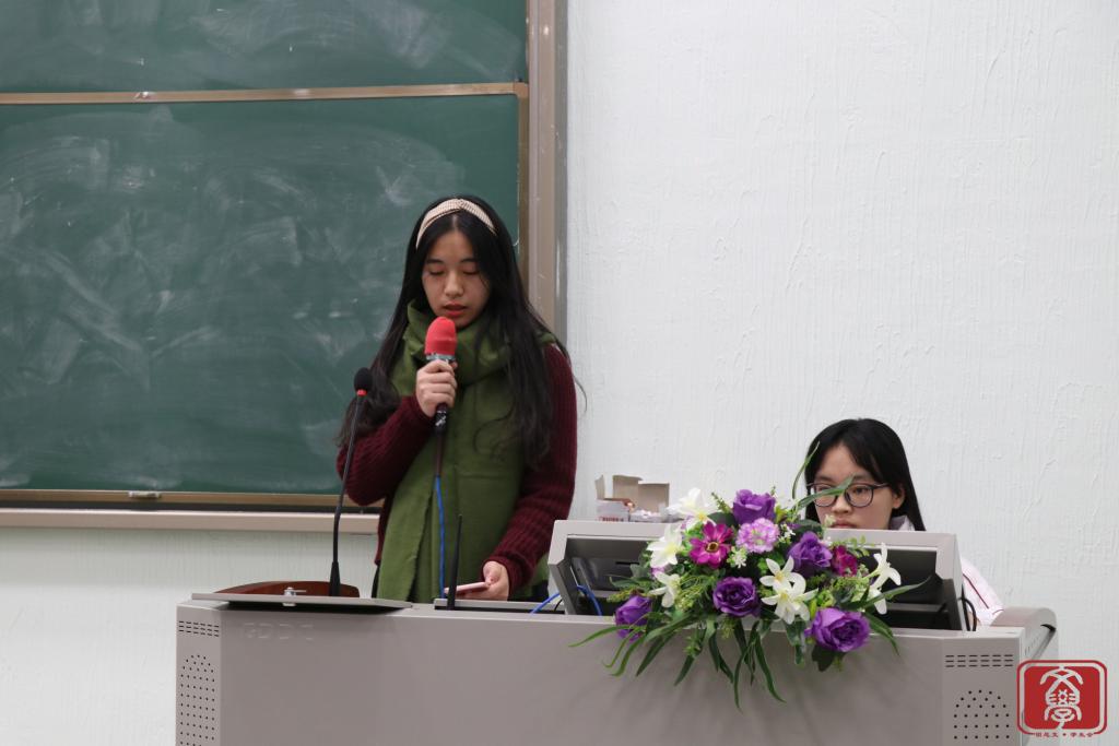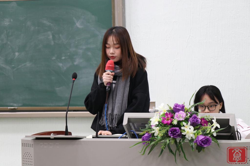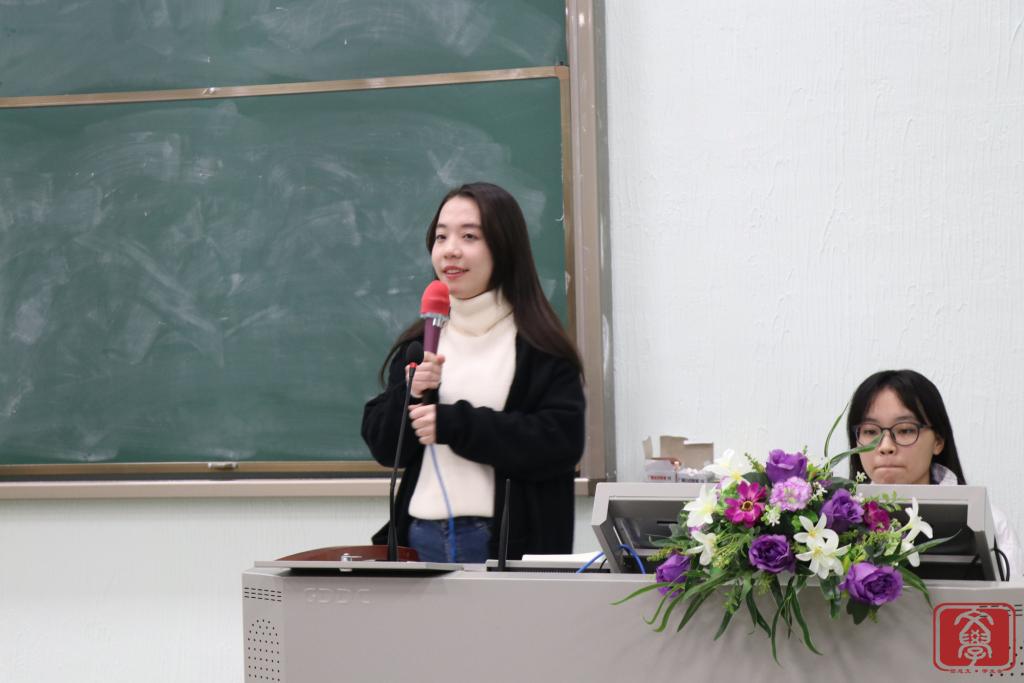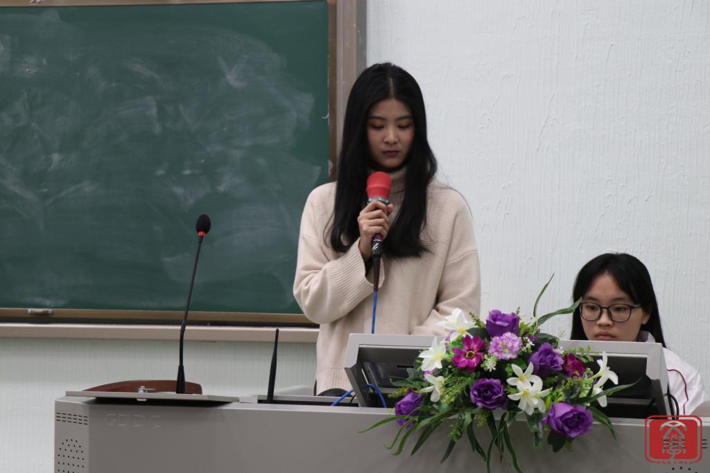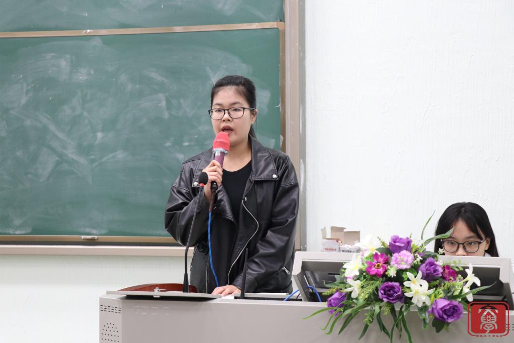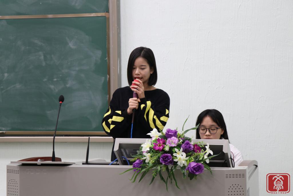 大会第三个环节,文学系团总支书记兼学生会指导老师丁洁老师为本次大会作总结。首先,她对团学各干部干事的付出表示衷心感谢,正是大家的努力付出,才让团学举办的活动得以“自动化”完成。接着,她表示在工作方面会严格要求各干部干事,尽心尽力,希望能与文学系团学一起成长。