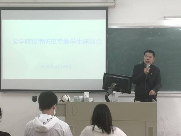 4月19日下午,我院召开疫情防控专题学生座谈会。我院党委副书记郭堪通、辅导员王怡荻、陈霞、陈桂财和学生代表参加本次座谈会。