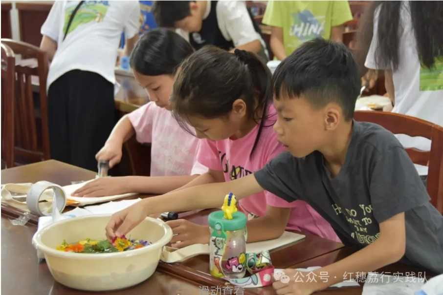 7月8日,太阳网集团tcy8722“红穗荔行梦之队” 在上境村夏令营的第二天课程开始啦。 上午的“植物拓印”和“非遗剪纸”超有趣!我和小伙伴敲草木、剪红纸,离老手艺好近,像摸到了传统文化的脉搏,原来它们一直在身边。 下午的“情绪英语”能说心里话,“诗歌拼贴”能剪小诗,表达感情的方式真多。 这四堂课呀,把老手艺和新想法搅成蜜,把聪慧和情愫织成锦。乡野童年像被撒了神奇种子,冒出好多新奇嫩芽,每片叶子都闪着别样的光!