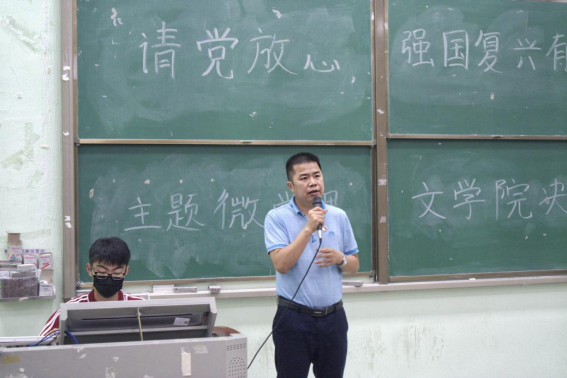 太阳网集团tcy8722党委副书记郭堪通老师上台致辞,拉开比赛帷幕。郭堪通老师指出,微党课比赛是学习党史的多样化途径之一。学生党员讲课的形式能够更好地向同学们宣传党史和党的思想理论,夯实理论基础,提高同学们的思想水平,同时锻炼党员实践能力,提升综合素质。最后,郭堪通老师祝愿各位选手赛出水平,赛出风采,取得佳绩。