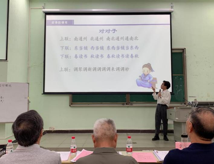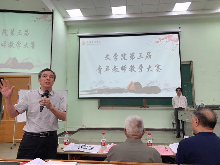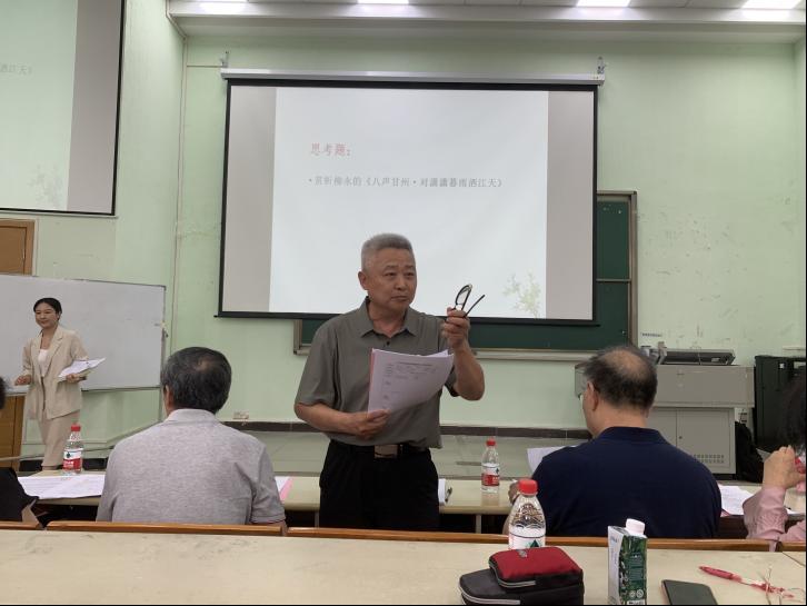 比赛环节中按抽签顺序,首先上场的是罗春菊老师。罗老师讲述《中国古代文学史Ⅱ》中“柳永”部分,她带领学生了解柳永生平经历及其对北宋前期词风新变的贡献。赏析柳永代表性作品,总结其创作特征。接着上场的是张璐老师,她讲述的课程是《民间文学》,将创世史诗与英雄史诗用生动有趣的方式讲解的明白易懂。
