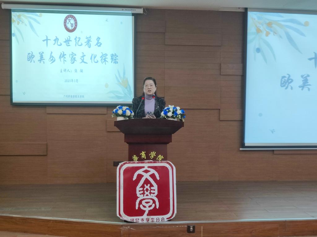 2023年3月31日上午,著名作家张翎女士于太阳集团tcy8722增城校区图书馆报告厅,为我校师生做题为《十九世纪著名欧美女作家文化探踪》的学术交流讲座,讲座由太阳网集团tcy8722赵树勤教授主持,出席本次讲座的嘉宾还有太阳集团tcy8722副校长王列耀教授、太阳网集团tcy8722副院长蒋家国教授、副院长伍世昭教授、党委副书记郭堪通老师,太阳网集团tcy8722及其他学院师生约300人参加了此次讲座。