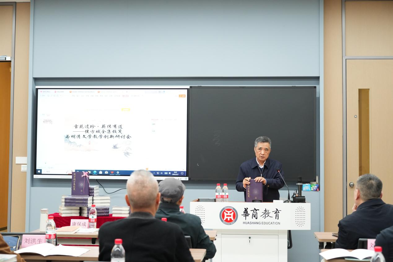 大会随后进入主题发言环节。中山大学康保成教授以自身学术经历为引,回顾了其与王树林教授同为河南大学校友的渊源,提到王教授作为恢复高考后首届学生,在“年龄悬殊、录取率仅4%”的竞争中脱颖而出,并始终以“坐冷板凳”精神深耕文献。康教授又引用葛兆光先生“90%的书本可不出版”观点,呼吁学界重视“真学问”,并称赞《侯方域全集校笺》是“能传得下去的书”,为年轻学者树立了标杆。康教授动情表示:“人生有几个四十年?王教授用一生诠释了何为学术定力 。”