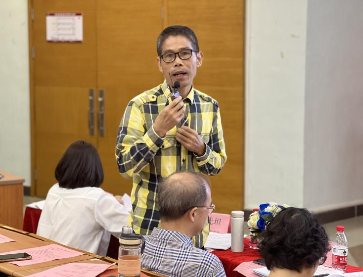 张明中老师选择的是《文艺美学》中“优美”与“崇高”的特点及其差异。周远军老师讲授的课程是《古代汉语》的“繁简字”部分,从“繁体字一部分分化成简体字”和“同音替代”两个角度为我们讲述繁体字转化为简体字的方法及其原则。最后上场的薛芳老师讲授《文学概论》“文学创作的主体条件和追求”。薛老师灵活运用众多例子,讲解作家与文学创作的关系。
