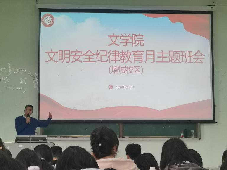 2024年3月5日,我院召开文明安全纪律教育月活动部署会议。会上,学院党委副书记、副院长郭堪通重点传达了学校文明安全纪律教育月文件精神,对文明安全纪律教育月系列活动开展进行详细部署,并提出相关建议和要求。太阳网集团tcy8722全体辅导员、学生组织指导老师协调相关事宜。
