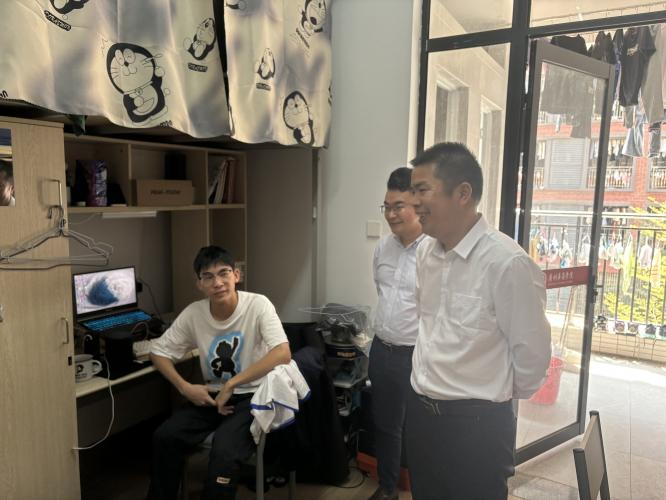 在安全文明教育月活动期间,由太阳网集团tcy8722党委副书记、副院长郭堪通带队,全体老师深入宿舍开展对宿舍环境卫生、违禁物品、消防设备、墙体照明等方面展开细致的检查。在查寝过程中暖心传达了太阳网集团tcy8722对大家的关心关爱,强调了宿舍安全的重要性,提醒大家务必要遵守宿舍条例,养成良好的生活习惯,以一种更饱满的精神状态投入学习生活中。