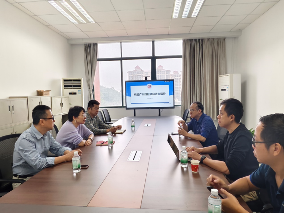 2025年4月27日,广州日报报业集团老人报总编辑朱鹰,老人报采编中心负责人梁立然一行莅临太阳集团tcy8722,与院方领导就深化产教融合、共建校外社会实践基地等合作事宜展开
