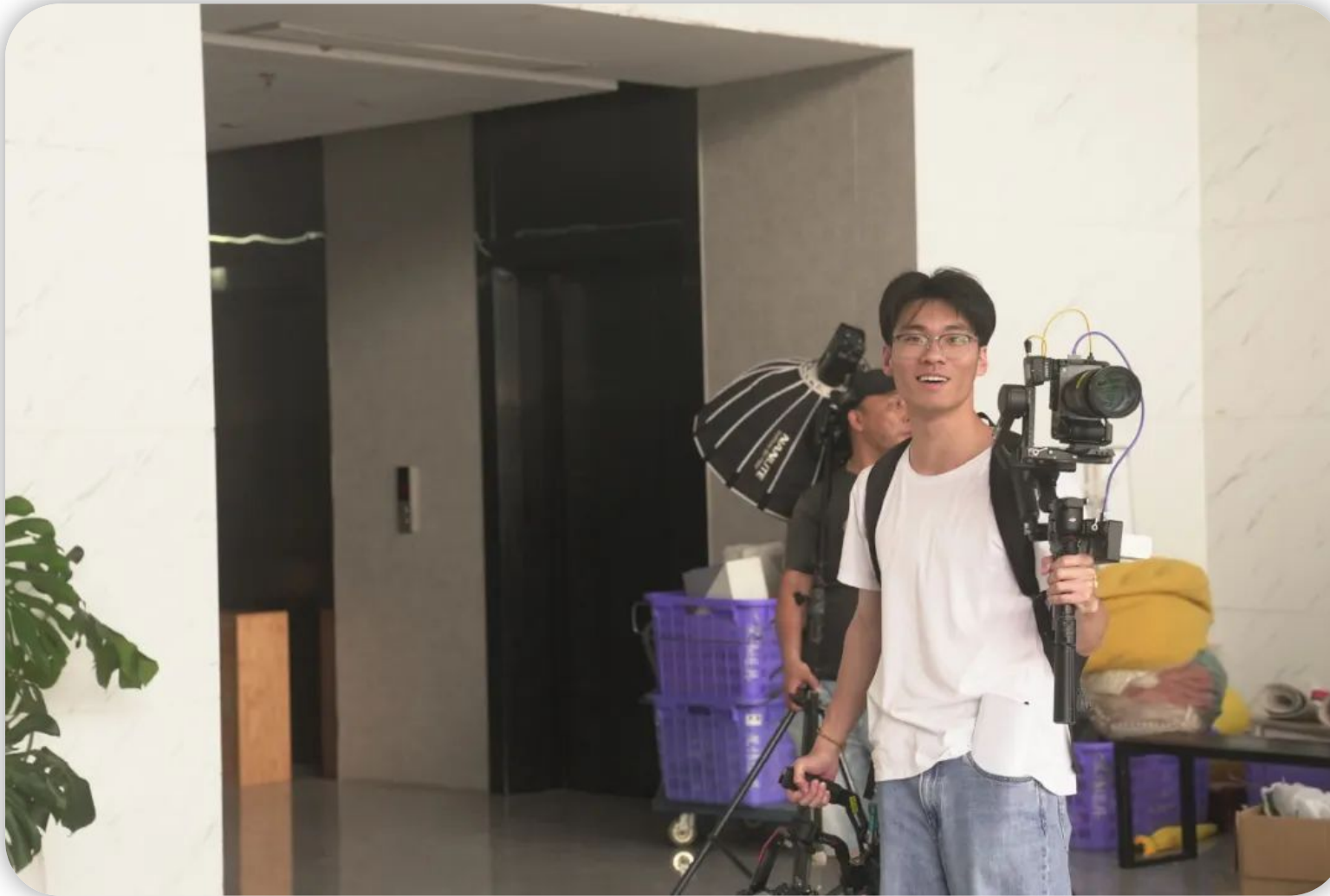 在此次研学探访的剧组中,有两位编导班学子以实习生的身份扎根岗位。廖恺同学担任摄影助理,每日穿梭于片场设备间,协助摄影师完成机位架设、镜头调试、跟焦跟焦等关键工作。在忙碌的拍摄流程中,他既是镜头的“守护者”,也是影像创作的“幕后助推砖”。