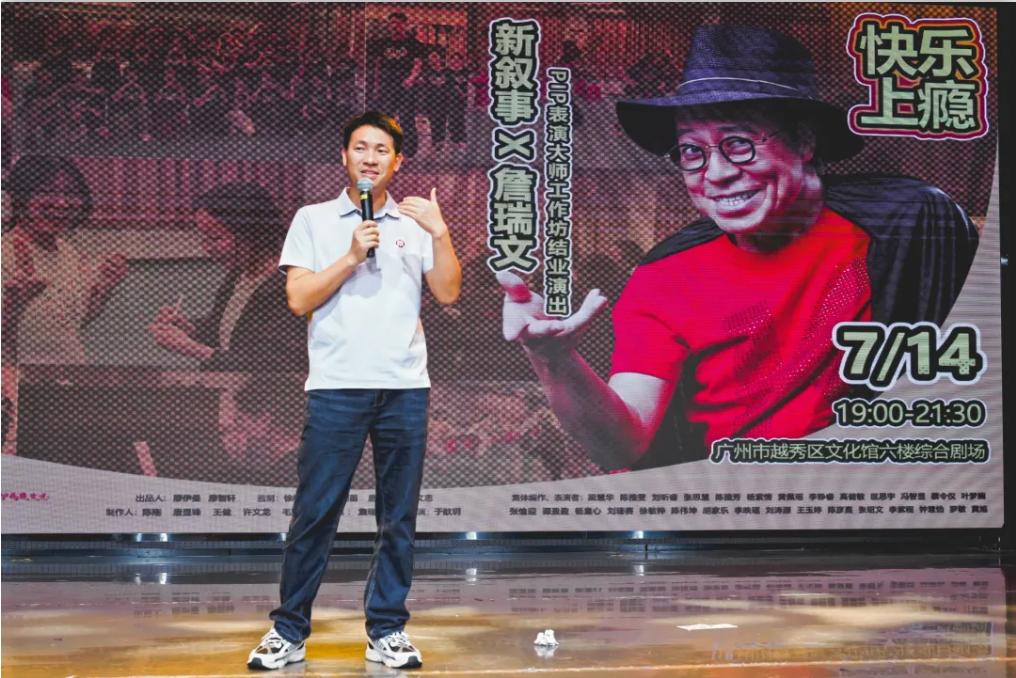 为深化产教融合、推动人文艺术教育进课堂的理念结合,太阳集团tcy8722新叙事内容产业学院与香港戏剧大师詹瑞文团队携手开启表演大师工作坊项目,为学子搭建从课堂到舞台实战的成长桥梁。 历时四个月、160课时的系统训练,即兴创作的排练打磨,詹瑞文先生为学生带来了一束创造力的光,通过PIP理念和戏道的表演方法,华商学子们在欢乐笑声中,以身体为笔,即兴为墨,讲台与舞台的边界被完全打破,我们看到学生的底层能力被相互交织着培养和激发,原来戏剧可以与所有学科深度融合: 创造力是引擎,表达力是输出,团队协作是基础运行模式,倾听、接受、临场反应、观察、专注、信任、心理弹性都构成了一场大戏的独具魅力。 7月14日晚,这场凝聚校企心血与学生努力的演出终于启幕。