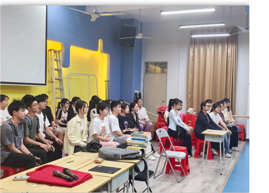 4月15日的第一堂课,是一场充满惊喜的 “相遇”。教室里,老师们带着 “Pleasure(快乐)、Imagination(想象)、Play(游戏)” 的理念,用一场别开生面的破冰活动拉开序幕 —— 同学们在 “听指令做动作” 的欢笑声中打破拘谨,在 “漫步在课室里” 的练习中释放想象力。那一天,大家第一次意识到:表演不是遥不可及的 “专业技能”,而是从放松身体、倾听彼此开始的日常。