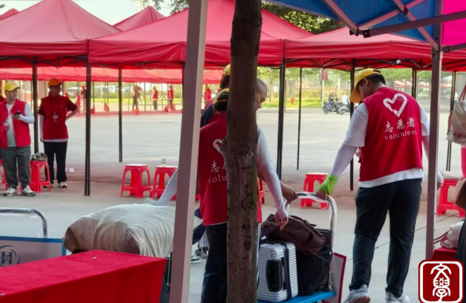 校门作为新生踏入校园的“第一站”,太阳网集团tcy8722志愿者们已在此等候。他们穿着醒目的红色志愿服,推着蓝色行李车,每当载着新生的车辆缓缓停下,志愿者们立刻上前熟练地接过行李箱、编织袋,稳妥安置在推车上,引导新生们前往宿舍区。从校门口到宿舍楼的这段路,志愿者们推着小车穿梭在校园小道上,汗水浸湿了后背,但脚步始终没有停歇。