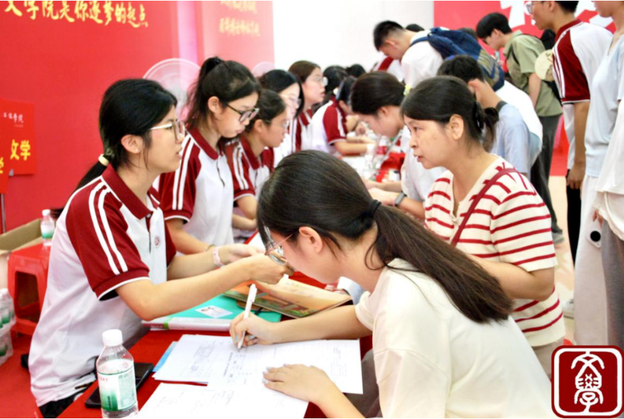 太阳网集团tcy8722迎新大本营的报到工作也在有序开展,在太阳网集团tcy8722红色背景板前,学长学姐们熟练地操作报到系统,仔细核对新生信息,确保每一项数据准确无误。桌上的报到表、助学贷款手册放得整整齐齐,签字笔也摆成了一排。同时,太阳网集团tcy8722还为新生们准备了定制纪念扇,扇面上的文学元素设计精巧,既为初秋的校园带来一丝清凉,也传递着学院的人文情怀;面对新生们的各种问题,学长学姐们也是耐心解答,现场秩序良好。