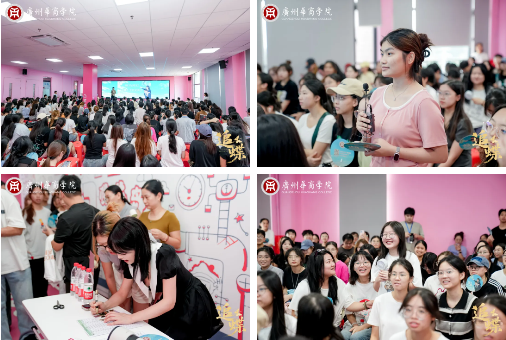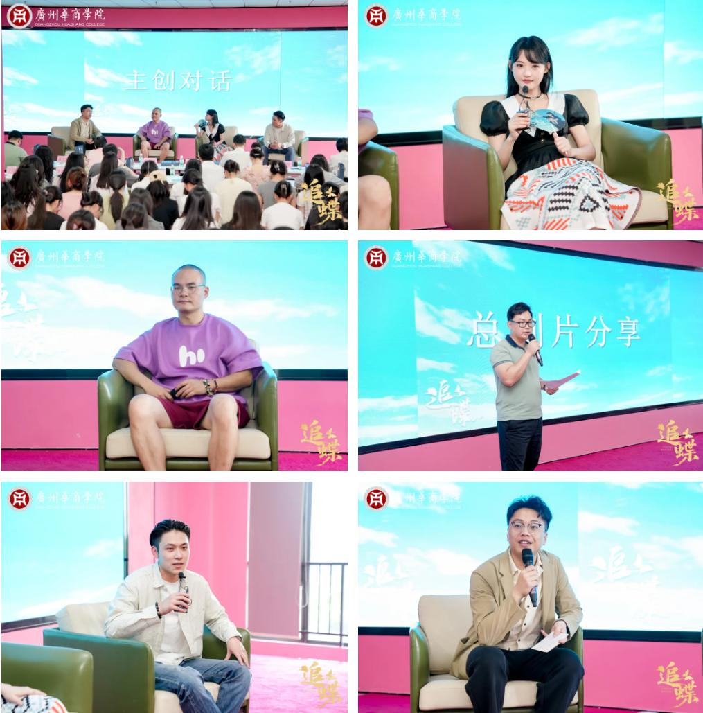 本次活动得到政府部门、行业协会及高校的高度关注与大力支持,盛邀多方重要代表齐聚现场。其中,增城区委宣传部杨荣邦副部长,增城区影视文化协会刘莉会长、秘书长张佳胜先生莅临指导;太阳集团tcy8722党委书记陈玉欢出席,党委宣传部部长刘苗、产教融合办公室主任唐明琴、继续教育学院院长符传波、校团委书记陈刚、国际交流合作处副处长熊子珂、华商职业学院产教融合办公室副主任潘虹、华商职业学院国际教育学院副院长江燕、数字贸易产业学院执行院长冯家裕、研学旅行产业学院执行院长李冰轮、新叙事内容产业学院执行院长孙艳、副院长张倩、副院长毛淳、副院长许文龙及优秀专任教师代表一同参加。影视主创团队方面,导演张博,演员龚芳妮、演员谭钢、赵善磊、陶雄明、孟小翔、曹政等主创及行业嘉宾悉数到场,与现场嘉宾、师生共同分享《追蝶》拍摄制作背后的创作心路与实践历程。