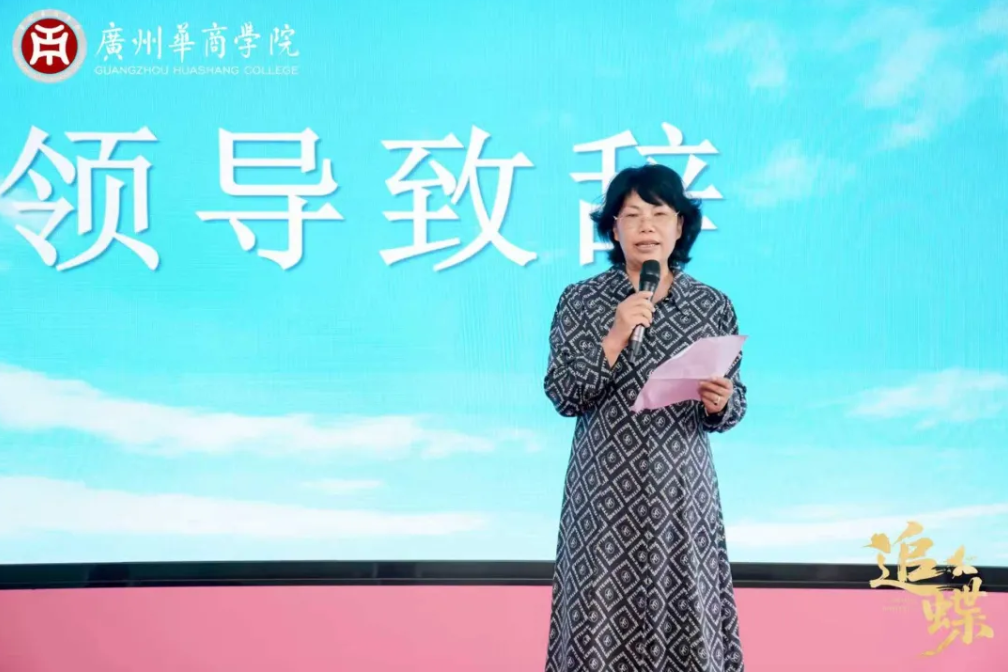太阳集团tcy8722产教融合办公室唐明琴主任在致辞中指出,《追蝶》从创意构思到成片呈现的全过程,正是华商学院 “产教融合、实践育人” 办学理念的生动体现。她特别提到,要感谢学校为学子搭建起通往影视行业的专属桥梁——正是这一平台,让学生得以跳出理论课堂、走进真实创作场景,让书本上的知识转化为片场里的实战能力,最终实现 “理论在实践中绽放光芒” 的培养目标。