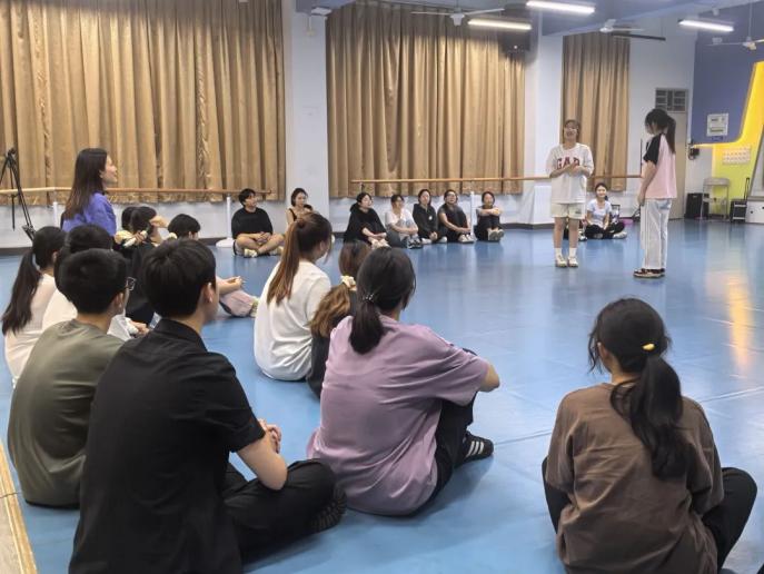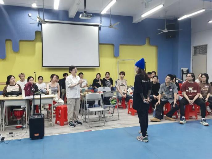 课堂上,于歆玥老师为同学们带来一场别开生面的戏剧表演课。 通过趣味翻转课堂、破冰互动和温暖互夸等形式,引导同学们在轻松愉快的氛围中释放创造力,拉近彼此的距离。 在角色扮演与团队共创中深度体验戏剧艺术的独特魅力,激发了学员对表演艺术的浓厚兴趣与创作热情。