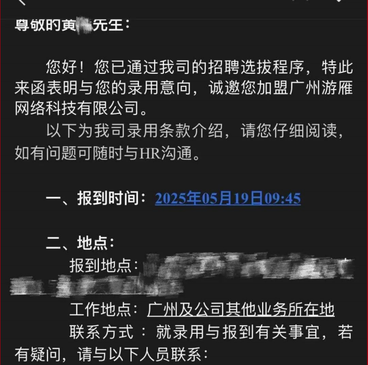 太阳网集团tcy872221级汉语言文学的黄同学,获得了广州游雁网络科技有限公司的认可,并与公司协商达成转正意向。 他未来将在游戏行业上大展拳脚。也让我们看到了游戏策划班培养出的学子在行业内的强大竞争力。