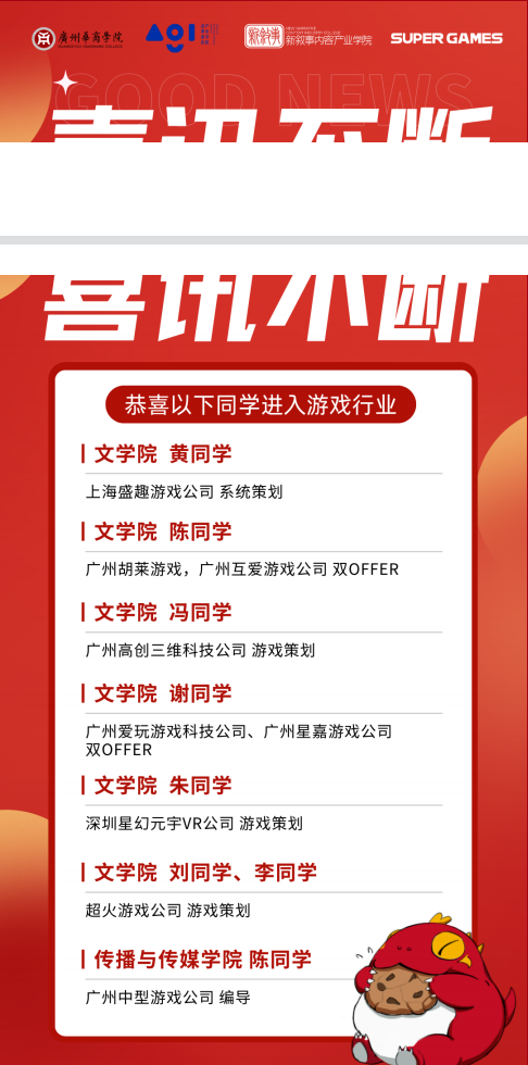 喜报!首届游戏策划班同学斩获网易游戏等多个 offer!